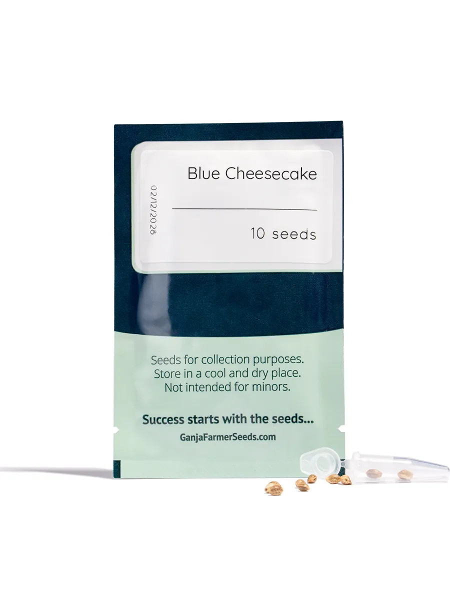 I semi Blue Cheesecake sono un’ibrida 50/50 di Ganja Farmer dal profilo cheese e mirtillo, con THC 19–24% e range di resa molto ben definiti.