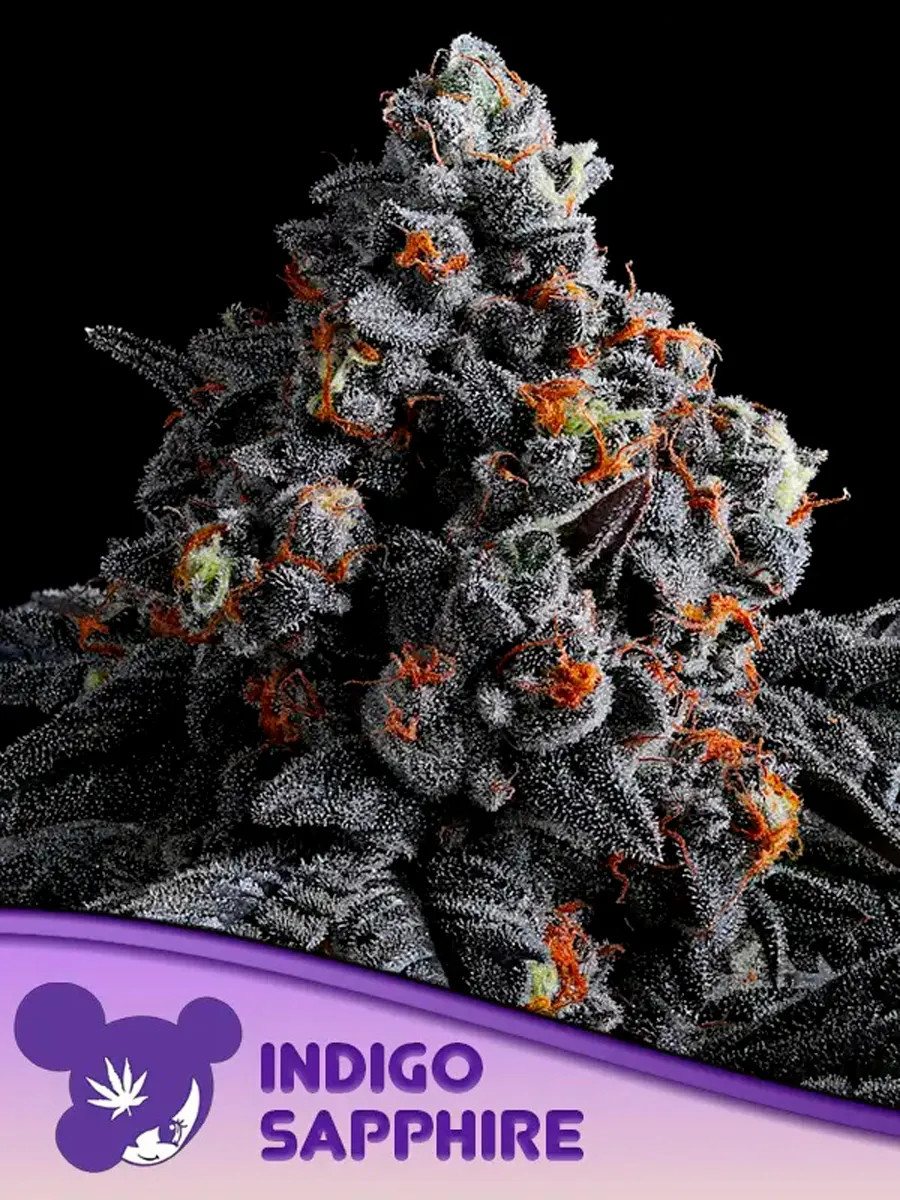 In indoor Indigo Sapphire raggiunge in genere 100–140 cm di altezza e completa la fioritura in 9–10 settimane. La resa dichiarata sotto lampada arriva fino a 600 g/m². I semi Indigo Sapphire sono femminizzati, quindi puoi organizzare lo spazio fin dall’inizio senza dover separare le piante in base al sesso.